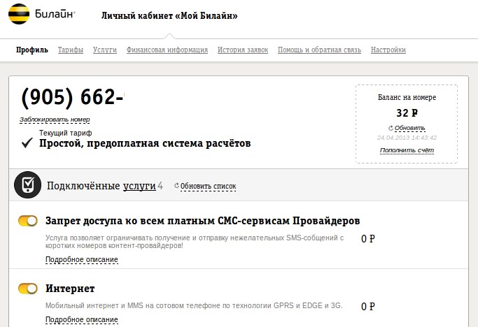Наиболее удобный и наглядный способ выбора и изменения тарифного плана – использование личного кабинета абонента на сайте Билайн. Для авторизации в нем необходимо получить на свой номер пароль.
