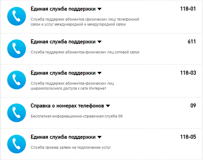 В том случае, если во время эксплуатации номера у вас появились проблемы, используйте единый номер поддержки телефонных линий физических лиц: 118-01. Так же у вас есть возможность использовать короткие номера Ростелеком: