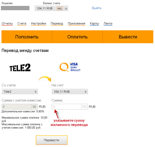 Перевод на Qiwi-кошелек